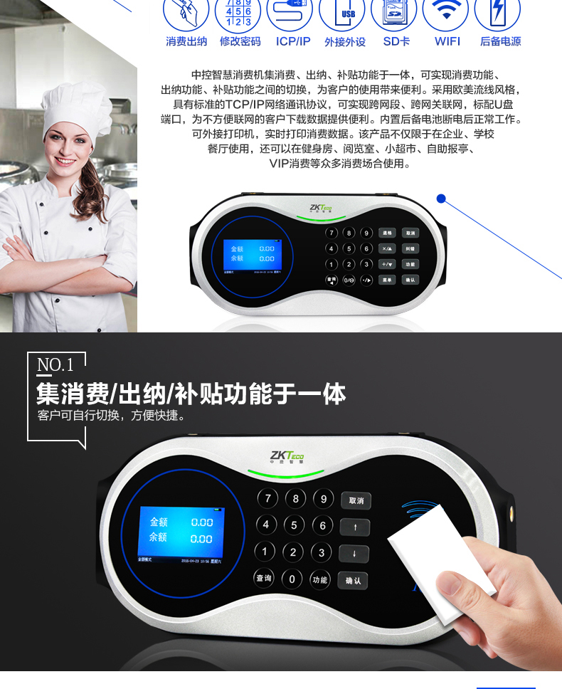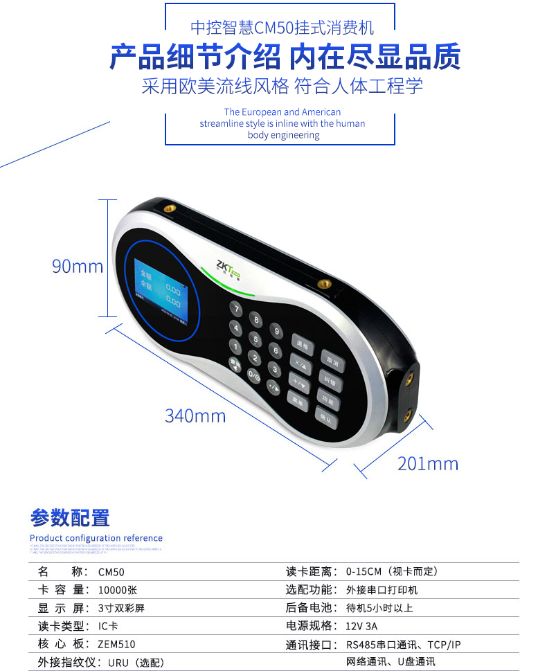 CM50離線式消費設(shè)備中控智慧食堂刷卡機